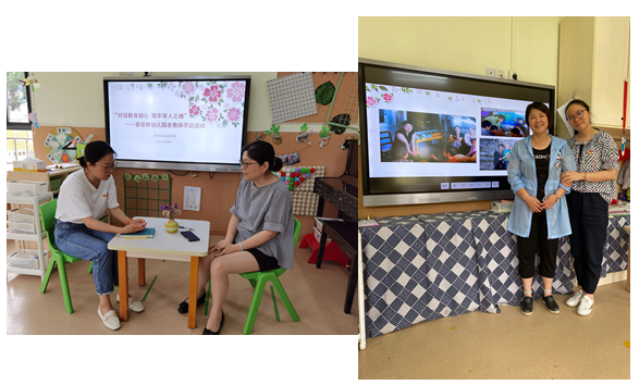 本次活动邀请了我园的保健倪彩芳老师和一线沈惠红老师。询问了老教师们的教育初心,了解了她们的过去、现在和未来。同时,通过老教师的视角,共同经历了青浦教育的巨大变革。当说起现在的职初教师时,老教师们纷纷表示,现在的青年教师非常幸福,进园的培训正规又细致,自身的学历也普遍较高,对目前的教育发展起到了很好的推动作用。